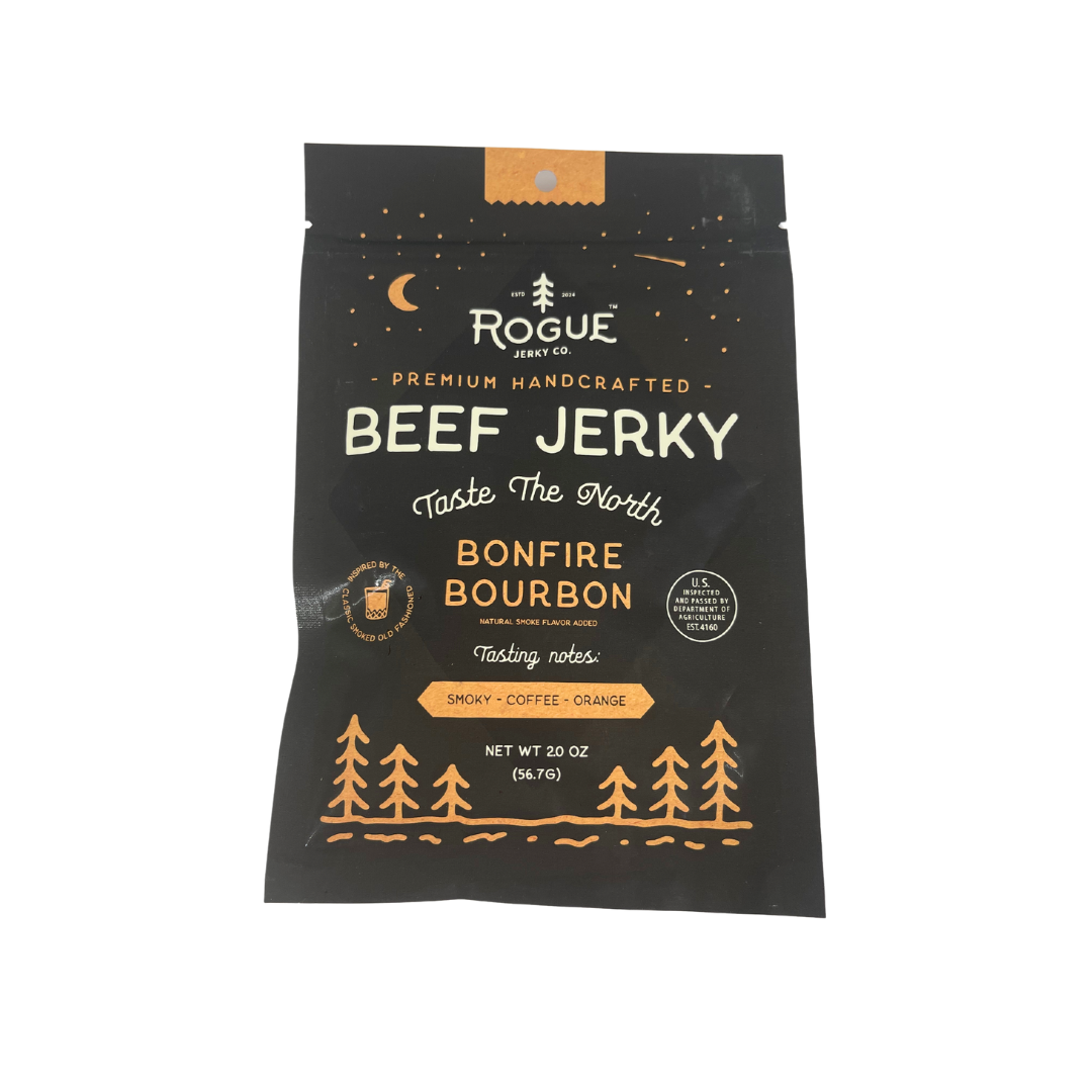 Bonfire Bourbon Beef Jerky: Savor the smoky, rich flavors of our Bonfire Bourbon Beef Jerky, a delicious snack that perfectly complements any outdoor gathering.