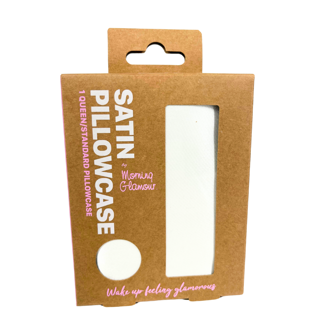 - An ivory satin pillowcase that helps protect skin and hair while enhancing sleep comfort.