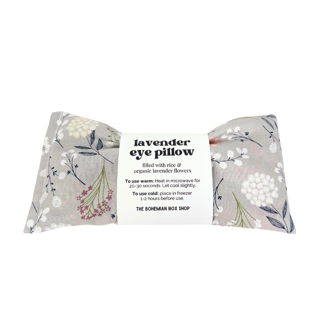 - A soft lavender eye pillow that provides relaxation for tired eyes and helps relieve stress.